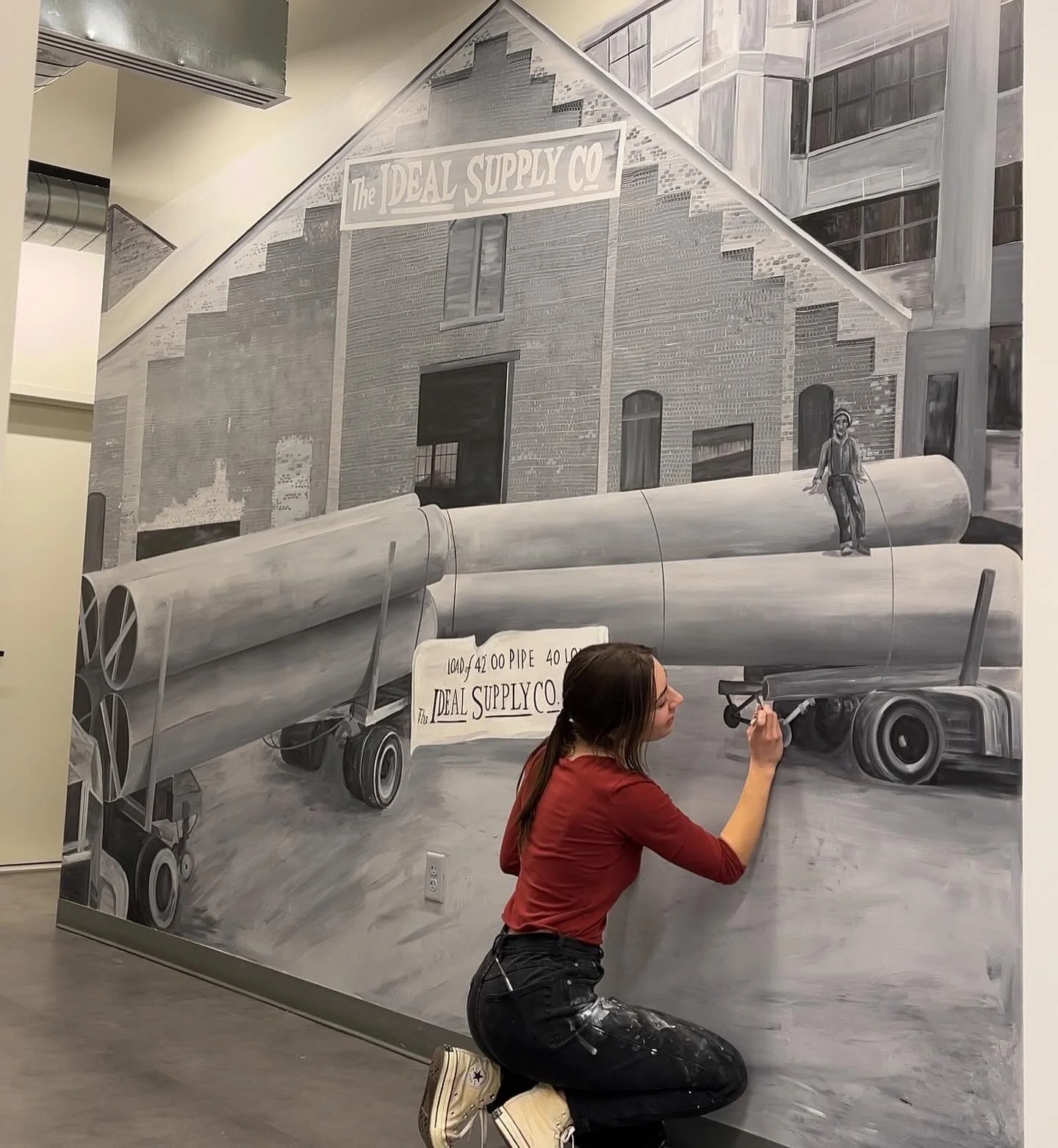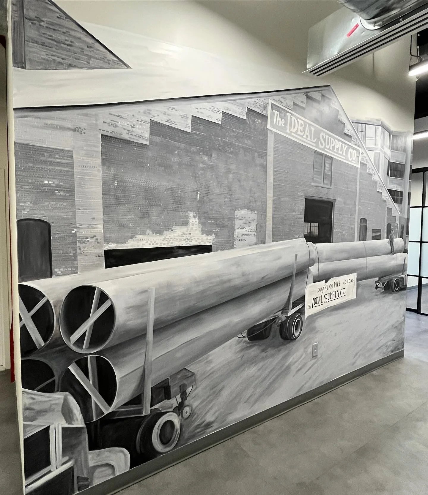 “Lynn was able to perfectly capture my vision for this mural. She painted the main wall in the office of my machine shop. She was punctual, clean, and professional throughout the whole process.”